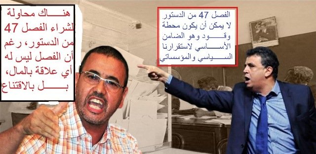 وأكد أفتاتي في ذات اللقاء أن هناك “محاولة لشراء الفصل 47 من الدستور، رغم أن الفصل ليس له أي علاقة بالمال، بل بالاقتناع