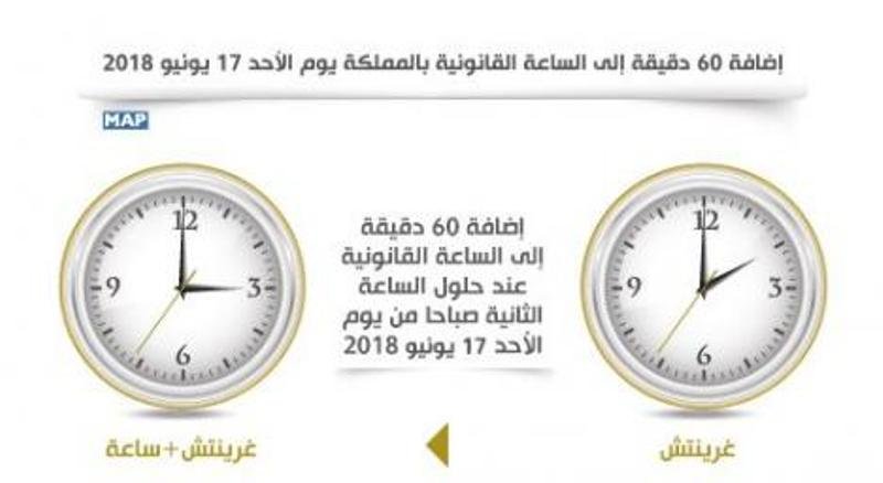 تمت إضافة 60 دقيقة إلى الساعة القانونية في المغرب عند حلول الساعة الثانية صباحا من يومه الأحد 17 يونيو 2018.