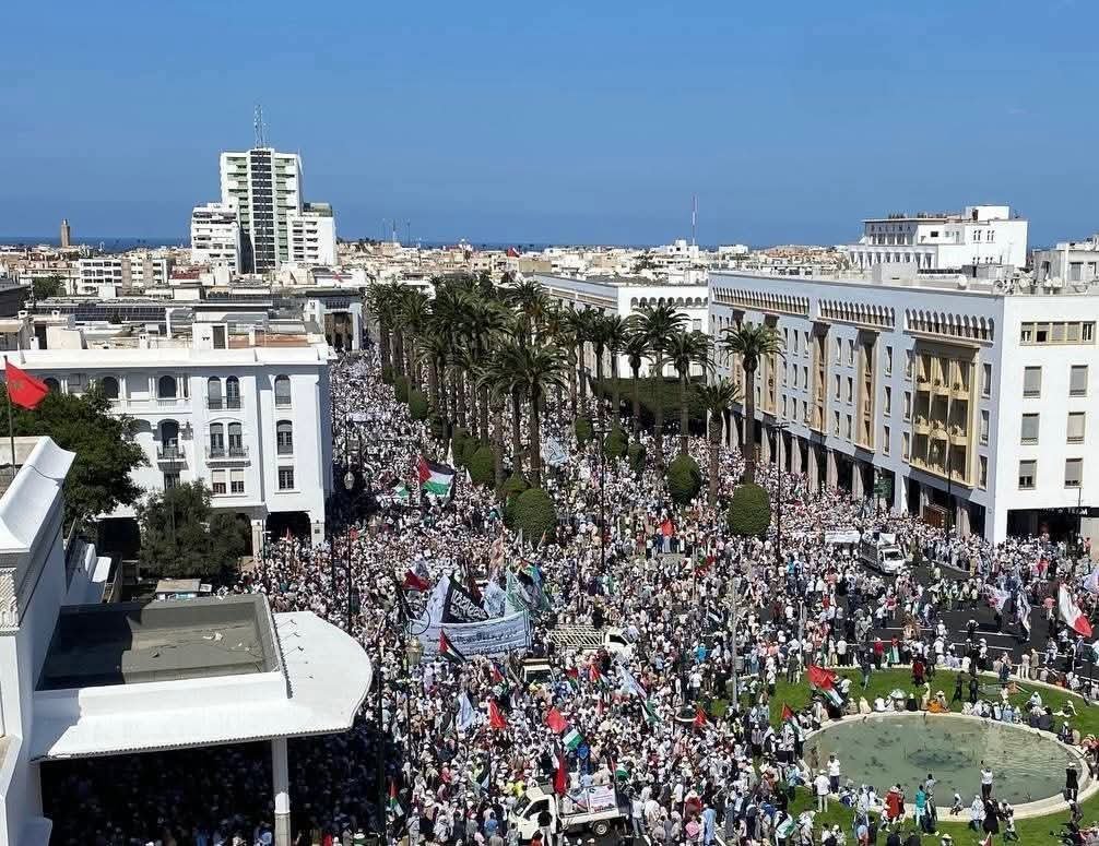 واليوم الأحد، وسيرا على تعلق المغاربة بفلسطين القضية، شهدت العاصمة المغربية الرباط، مسيرة شعبية حاشدة في الذكرى الثانية لانطلاق طوفان الأقصى، عبر من خلالها عشرات الآلاف من المتظاهرين، عن إدانتهم للإبادة الصهيونية المتواصلة في قطاع غزة، مجددين المطالبة بوقف قطار التطبيع.