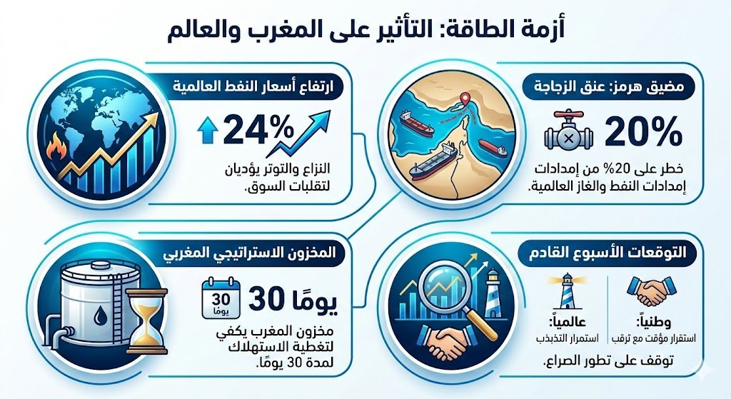 يبقى استقرار أسعار المحروقات في المغرب رهيناً بمدى احتواء الصراع في الشرق الأوسط. ورغم أن الـ 30 يوماً القادمة مؤمنة من حيث الإمداد، إلا أن تحدي السعر يبقى قائماً ومرتبطاً ببورصة لندن وروتردام.