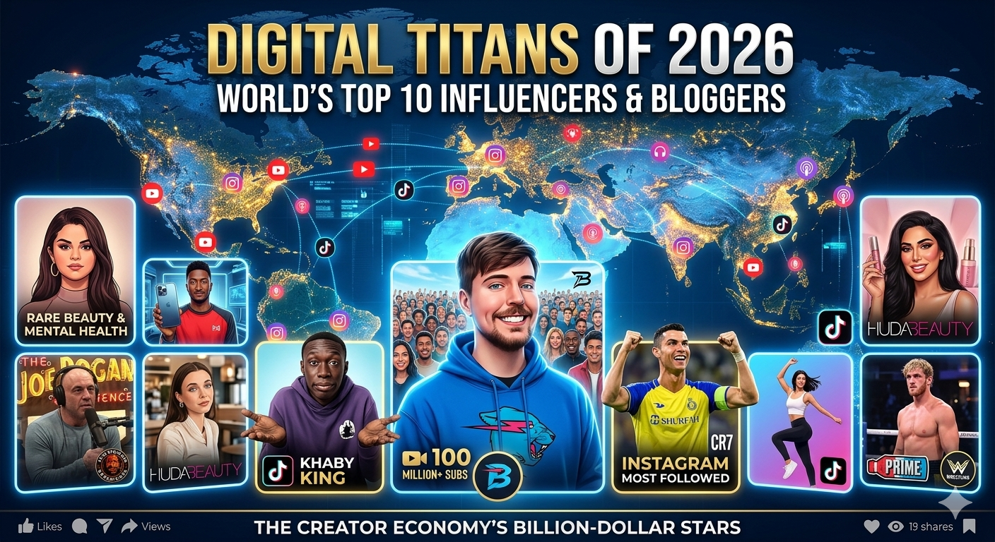 MrBeast, Khaby Lame, and Cristiano Ronaldo lead the global ranking of the top 10 influencers in 2026. These digital titans command audiences of hundreds of millions, blending high-production entertainment, silent comedy, and sports branding to redefine global marketing, philanthropy, and the burgeoning $500 billion creator economy.